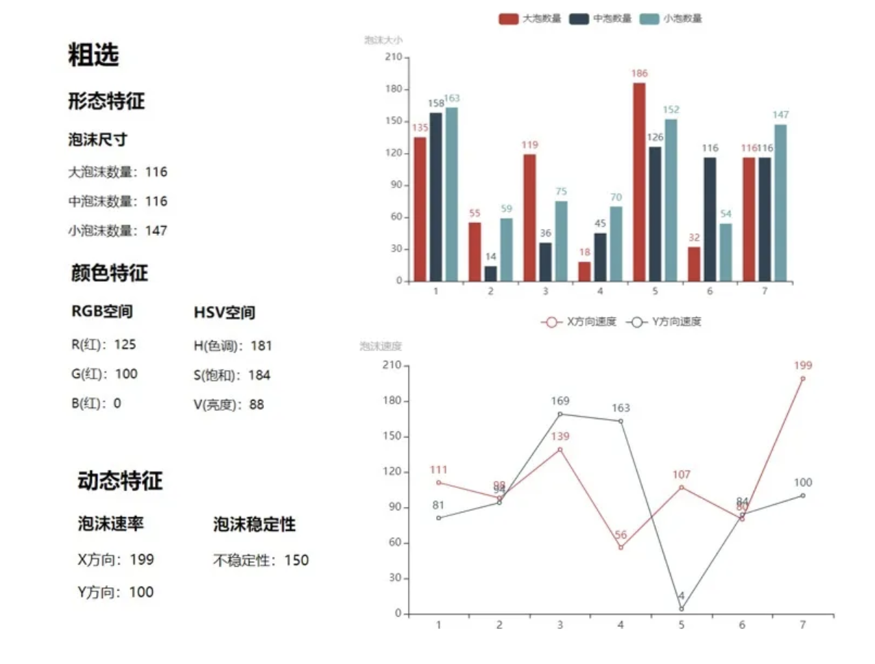 觀察浮選泡沫對于浮選操作人員來說是一項重要技能,需根據(jù)浮選泡沫的表觀現(xiàn)象判斷造成變化的原因,從而及時調(diào)整浮選藥劑添加量、充氣量和泡沫層厚度等,以保證浮選生產(chǎn)流程的正常運(yùn)行。其中,泡沫的形態(tài)特征、顏色特征、動態(tài)特征三個方面能夠全面的反映泡沫情況即浮選生產(chǎn)狀況,因此對這三方面的檢測并且量化對浮選生產(chǎn)的控制至關(guān)重要。