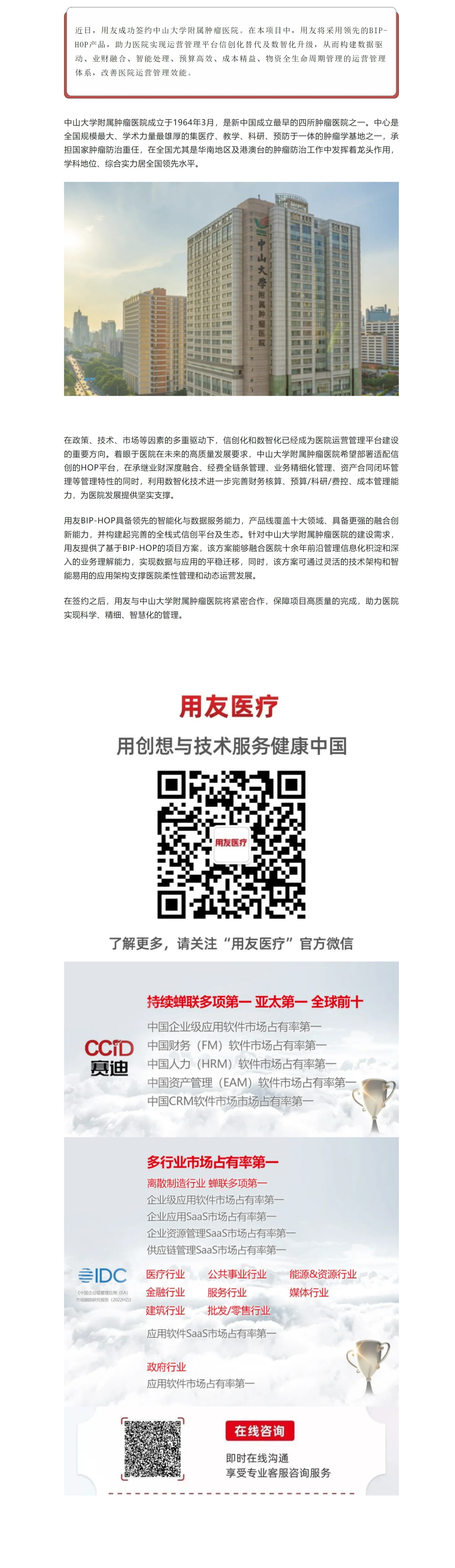 用友簽約中山大學(xué)附屬腫瘤醫(yī)院 助力運(yùn)營管理平臺(tái)信創(chuàng)化替代